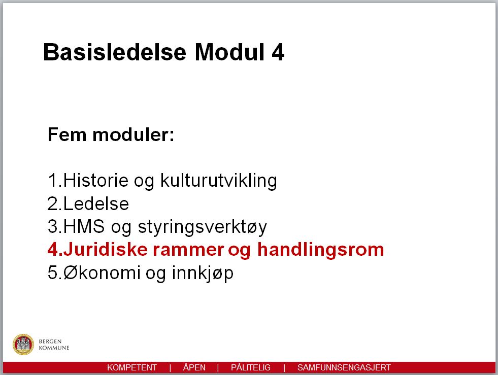 Basisledelse Modul 4 "Juridiske rammer og handlingsrom" 16.02.2017